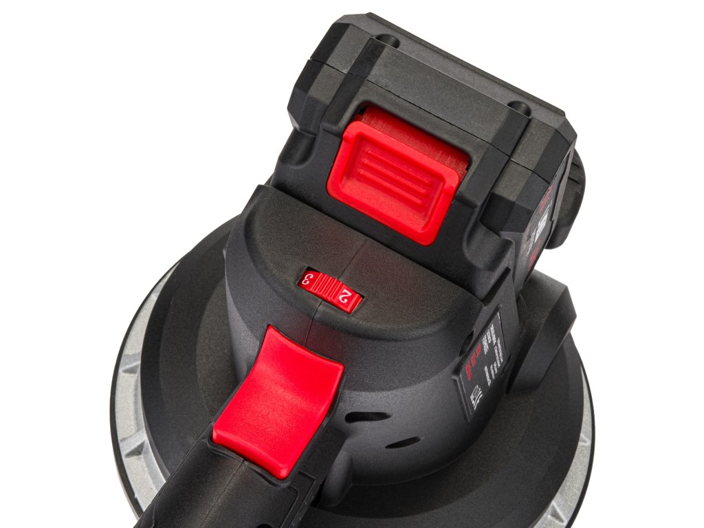 Ventuză RTAPW0053 alimentată cu acumulator Li-ion 21 V este ideală pentru utilizare atât în interior, cât și în exterior. Acest instrument inovator înlocuiește manipularea manuală tradițională și elimină eficient problemele de distribuire incorectă a pastei adezive sub plăci și piese mari. Forma sa unică și dubla prindere asigură stabilitatea încărcăturii în timpul ridicării și așezării plăcii, facilitând manipularea. Mânerele ergonomice cu inserții moi garantează o prindere confortabilă și sigură. Datorită construcției compacte și ușoare, permite setarea plăcilor cu ventuza (permite ridicarea până la 80 kg), și prin vibrații, îndepărtează eficient bulele de aer care se pot acumula între adeziv și placă, cauzând fisuri. Intensitatea vibrațiilor poate fi reglată ușor printr-un buton pe dispozitiv.