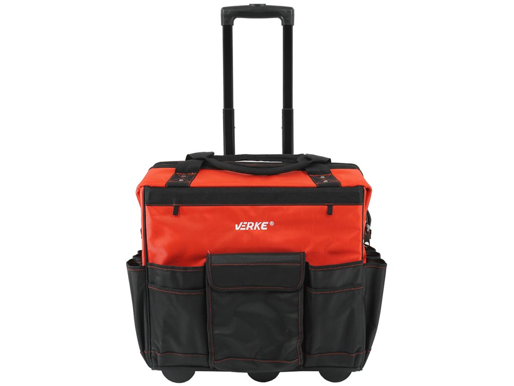 Geanta de scule Verke este ideala pentru depozitarea si transportul uneltelor si accesoriilor pe santier, in garaj sau atelier. Se caracterizează prin dimensiunile mari și construcția solidă, ceea ce o face o geantă foarte practică și utilizabilă. Are buzunare interne și externe pentru depozitarea șurubelnițelor, cleștilor și a altor unelte mici. Un compartiment mare cu fermoar asigură acces facil la unelte. Cusăturile și fermoarul principal sunt întărite, adaptate pentru sarcini grele. Mânerul telescopic de blocare împreună cu roțile puternice vor facilita transportul conținutului greu. Geanta este echipata cu un maner solid intarit cu nituri. Material: poliester 1680D. Țesăturile cu tricotat 1680D sunt printre cele mai durabile și de lungă durată materiale. Gramajul dens asigură durabilitate și rezistență excepțională la diferite deteriorări mecanice. Țesăturile au o structură de tricotat distinctivă și sunt acoperite suplimentar cu PU. T